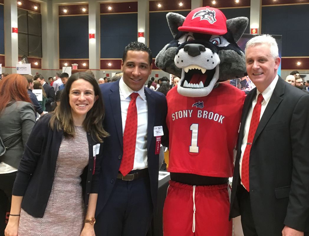 Zeynep (left) at a Stony Brook University job fair along with Jean Clifford Brutus