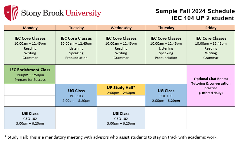A. Each semester there will be a pre-approved selection of undergraduate courses for UP students. You will be enrolled by the IEC into an appropriate freshman year course that meets the Stony Brook Curriculum (SBC) requirements.