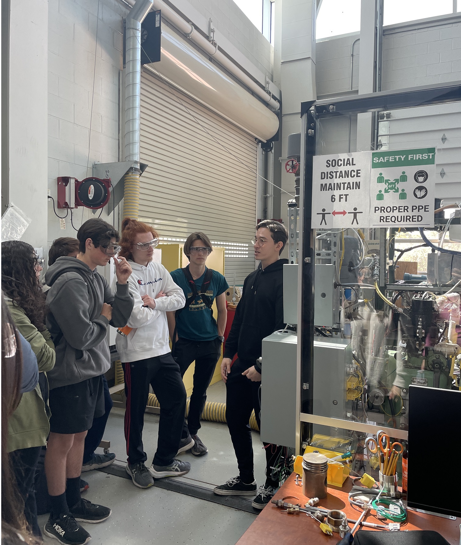 Afterwards, the visit shifted to the Center of Excellence in Wireless Information Technology (CEWIT), whereby both AI and robotic technologies were approached in a hands-on capacity via the world’s largest virtual reality deck and the Home of the Future. Following the scientific and technological exploration, lunch was sponsored by Joe Ambrosio of Unique Electric Solutions (UES), who spoke to the student group about electric vehicle technology and necessary skills for future educational and career pathways.