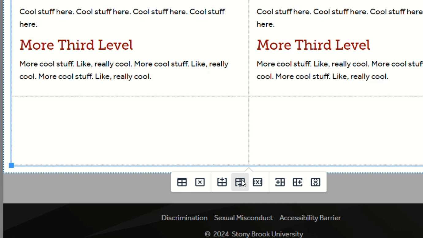 4. To add a row , click on the bottom border of the table. One small tool bar for table actions will open. Click on the add row.