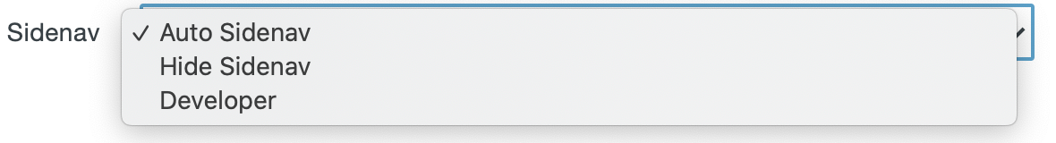 • Auto Sidenav — Recommended. This shows the sidenav on the page.