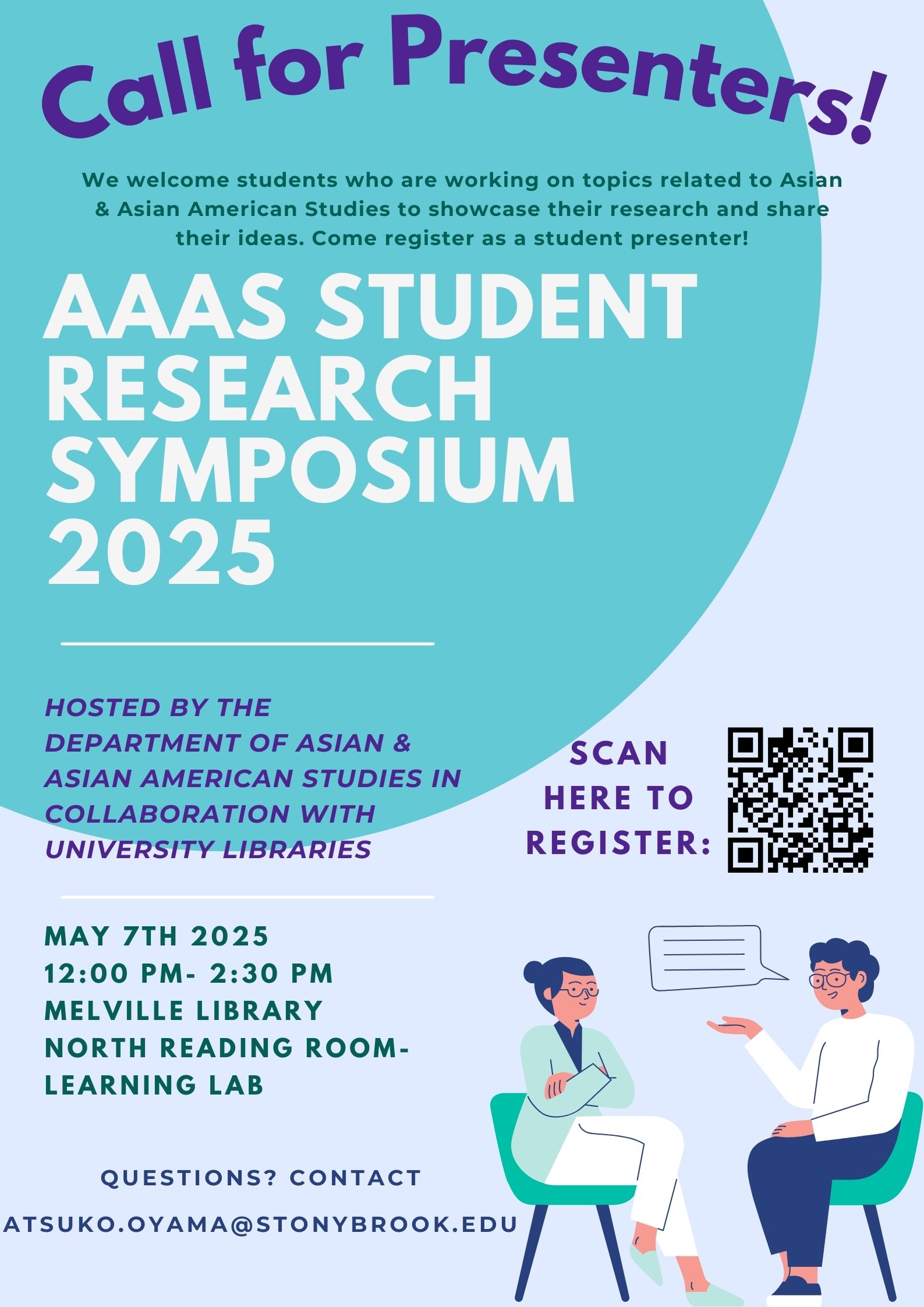 AAAS Student Research Symposium 2025 Wednesday, May 7, 2025 | 12:00-2:30 pm We welcome students exploring topics in Asian & Asian American Studies to share their research and ideas. Register to be a student presenter!